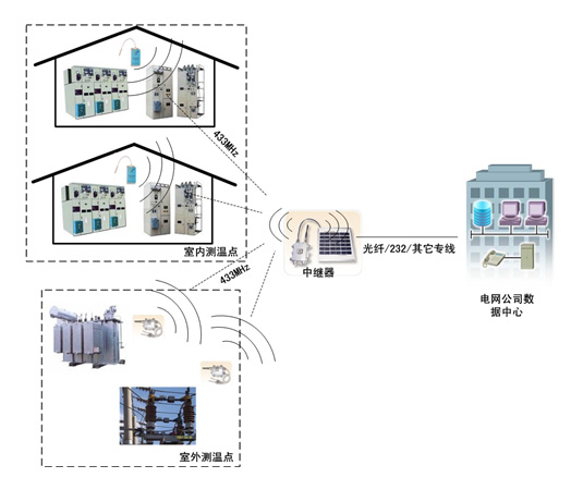 在電力系統(tǒng)中,高壓開關(guān)、GIS(氣體絕緣變電站)等高壓電器和載流母線等電力設(shè)備在負(fù)載電流過大時(shí)會出現(xiàn)溫升過高,最后能使相鄰的帶電部件性能劣化,甚至擊穿,根據(jù)電力安全監(jiān)督部門提供數(shù)據(jù)分析,全國電力單位每年因?yàn)楦邏洪_關(guān)、母線溫度過高引發(fā)的重大事故上千起,給生產(chǎn)和經(jīng)營造成巨大經(jīng)濟(jì)損失。通過監(jiān)測母線接點(diǎn)、高壓電纜接頭、高壓開關(guān)觸點(diǎn)溫度的運(yùn)行情況,可有效防止高壓輸、變電故障的發(fā)生,為實(shí)現(xiàn)安全生產(chǎn)提供有效保障。